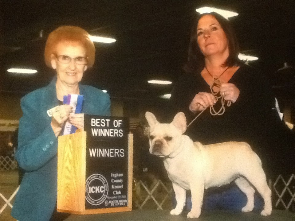 Georgia Blue wins in Lansing! Nov. 2014 Posted on February 8, 2015 by Valpo French Bulldogs Reply News flash….AKC loses Georgia Blue’s registration papers and takes her points away. But in our minds, she still won!
